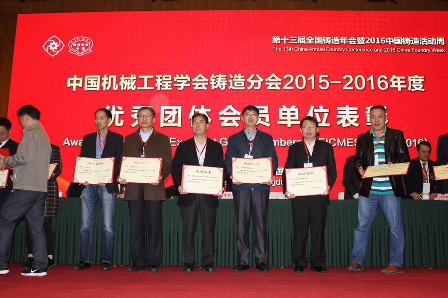 2016年10月28日,在成都金牛宾馆举行的第六届中国机械工程学会第十三届全国铸造年会上举行了“中国铸造终身成就奖”、“中国铸造杰出贡献奖”颁奖仪式。重庆长江造型材料集团公司董事长熊鹰先生荣获“中国铸造杰出贡献奖”。长江材料同时被评为优秀团体会员单位。